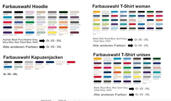 vorne oder hinten *Kapuzenjacke wird immer automatisch hinten bedruckt
