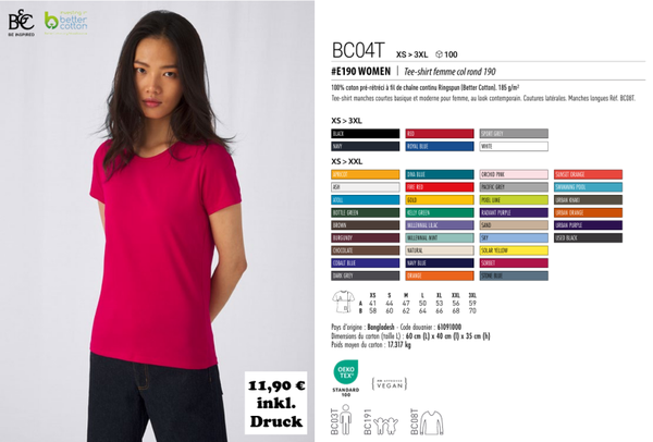 verfügbare Größen XS-3XL (Women) / XS-4XL (Men) in den Standardfarben: Black, Asphalt, Heather Grey, Red, White, Navy Blue, Royal - Andere Farben nur bis 2XL (Women) bzw. 3XL (Men)
